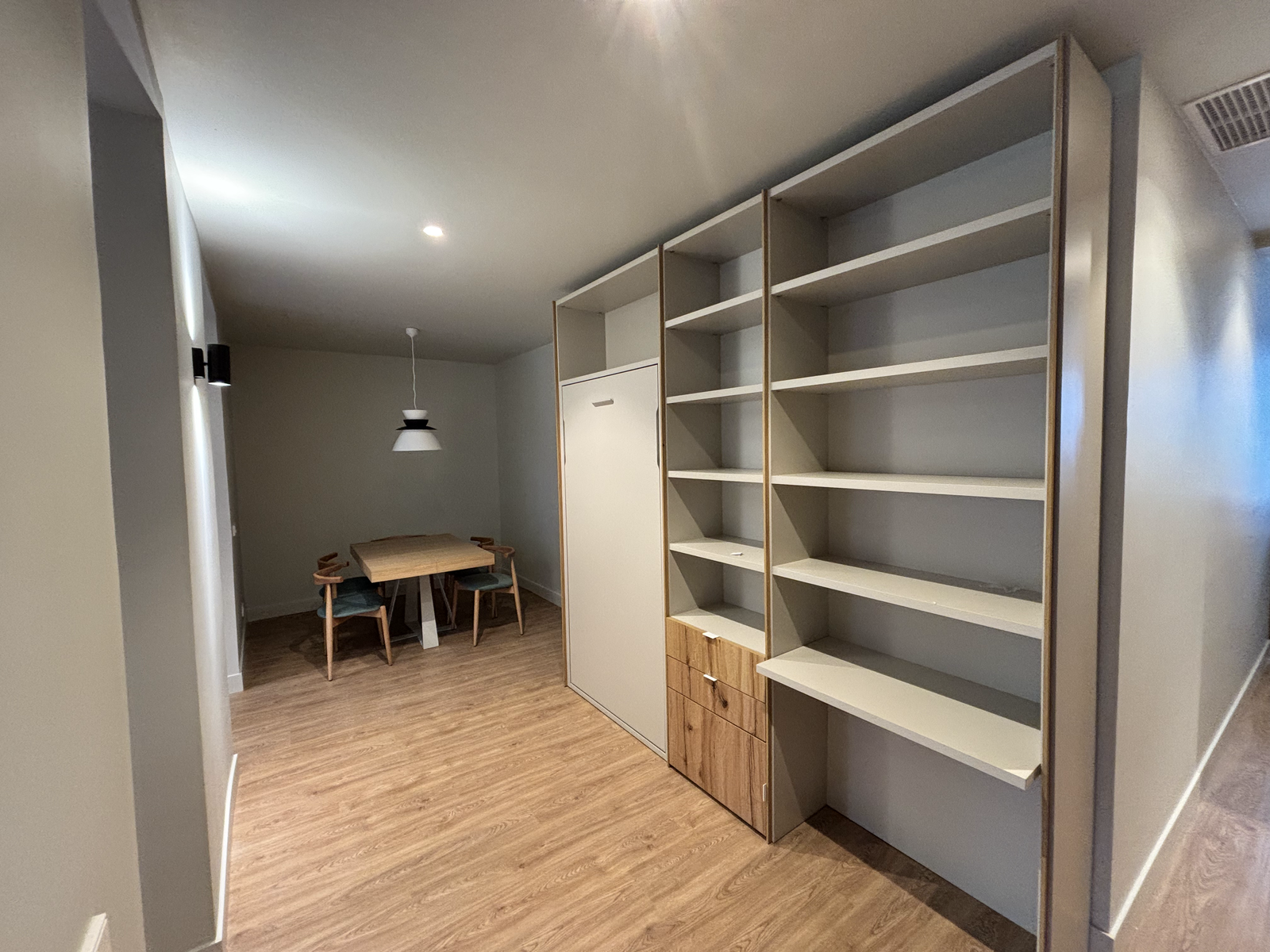 La reforma del proyecto C23 consistió en una renovación completa de una vivienda, enfocándonos en la optimización del espacio y la actualización de sus instalaciones. Se redistribuyeron las estancias para mejorar la fluidez y luminosidad del hogar, incorporando materiales de alta calidad y acabados modernos. Además, se renovaron las instalaciones eléctricas y sanitarias, garantizando eficiencia y seguridad. Este proyecto refleja nuestro compromiso con la transformación de espacios, adaptándolos a las necesidades y estilo de vida de nuestros clientes